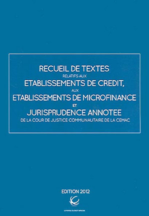 Parution du Recueil de textes relatifs aux établissements de crédit, aux établissements de microfinance et jurisprudence annotée de la Cour de Justice Communautaire de la CEMAC