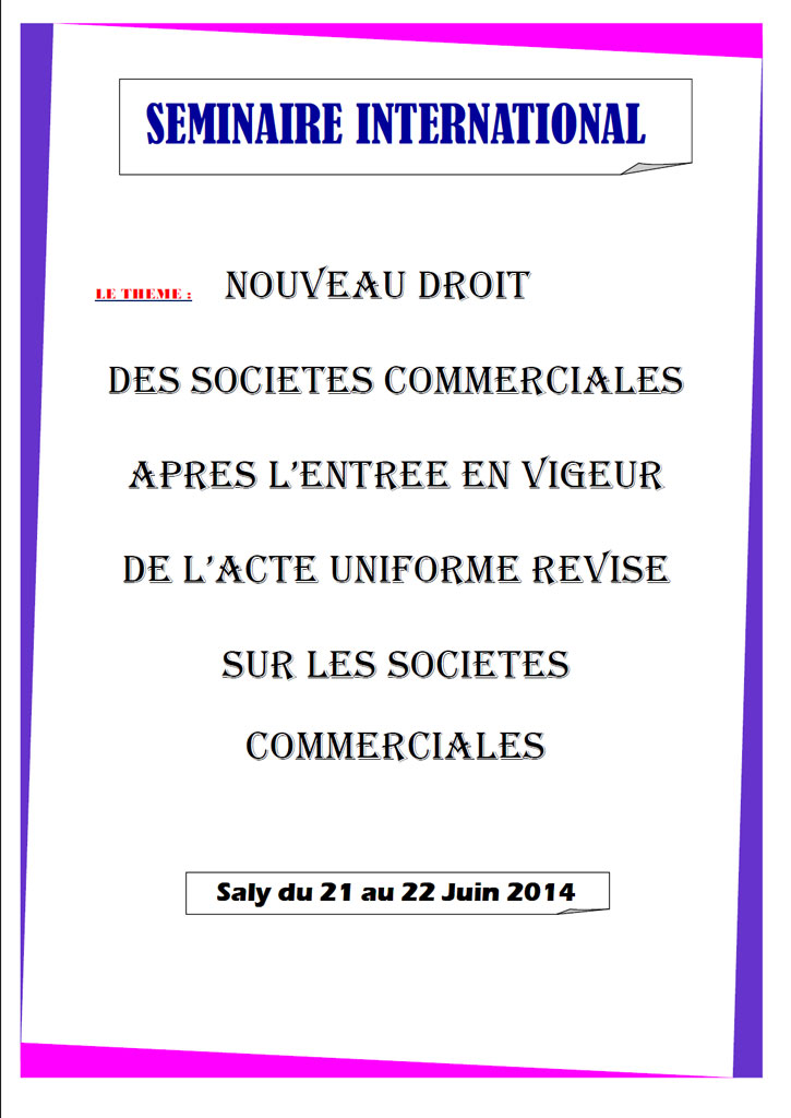 Session de formation sur le droit OHADA des sociétés commerciales après l'entrée en vigueur de l'Acte Uniforme OHADA révisé relatif au droit des sociétés commerciales et du GIE / SALY (SENEGAL) / 21 et 22 juin 2014