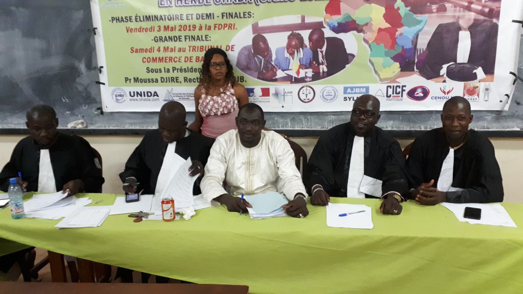 Le samedi 4 mai, la grande salle d'audience du Tribunal de commerce de Bamako a abrité la finale de la phase nationale du concours. C'était en présence du Pr Omorou Zakaria TOURE, Chef de services des relations extérieures et de la coopération de l'USJPB représentant le Recteur, le Pr Moussa DJIRE, du Dr Issiaka COULIBALY, Secrétaire principal représentant le Pr Kissima GAKOU, Doyen de la FDPRI, du représentant du Président du Tribunal de commerce de Bamako, le Juge Youssouf FOFANA, du représentant du Directeur général du fonds de garantie au secteur privé, du représentant du Syndicat libre de la magistrature, du Syndicat autonome des administrateurs civils, des membres du Club OHADA-U Mali et de l'Association des Juristes pour la Promotion du Droit OHADA au Mali (AJPDOM), des candidats et leur encadrement ainsi que plusieurs autres invités de marque.