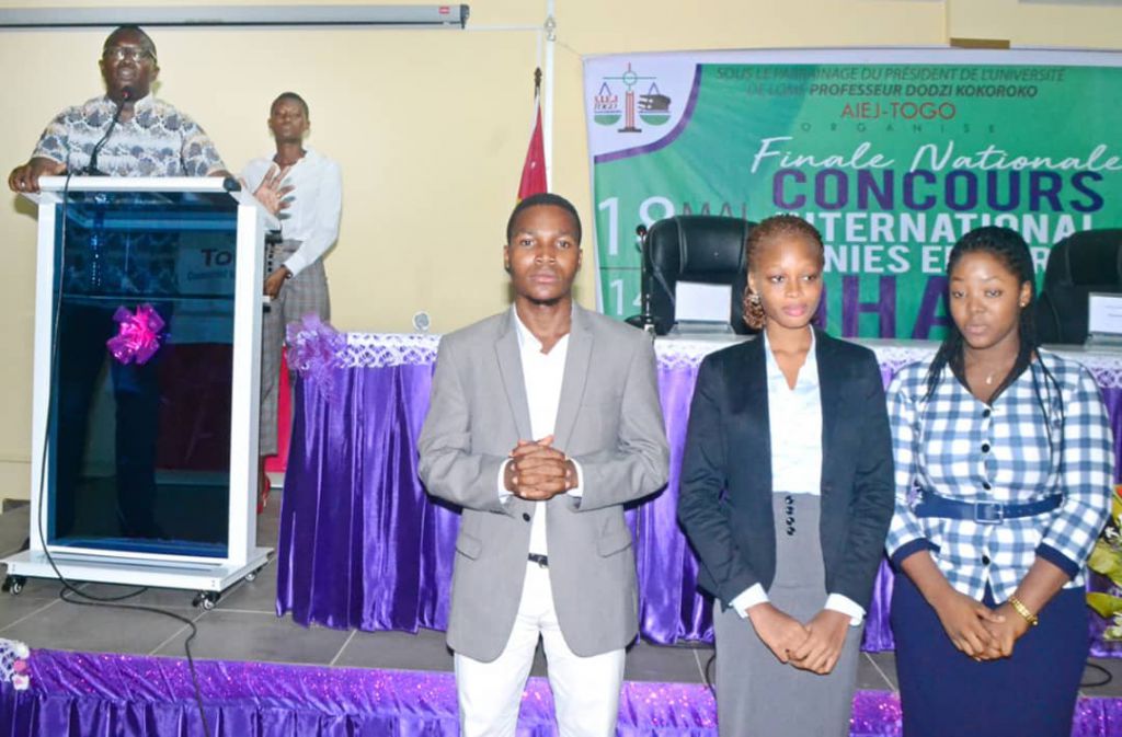 La parole a ensuite été donnée à M. Christophe GUELI, Président de la branche togolaise de l'Association Internationale des Etudiants Juristes (AIEJ-Togo), qui, pour l'essentiel, s'est félicité, d'une part, du palmarès du Togo à ce concours international et, d'autre part, du privilège qu'offre le Comité International à l'AIEJ-TOGO de co-organiser le concours international qui est à sa 11ème édition cette année.