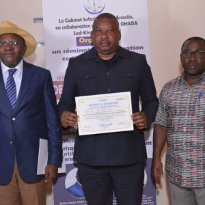 Un agent de la micro finance Société de Microfinance du Congo « SMICO » et un enseignant à la faculté de droit de l'UCB ont pris part active à la formation et ont reçu leur brevet de participation des mains de Maître Jérémie Wambo en présence du Premier substitut Simba.