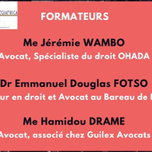 - Emmanuel Douglas FOTSO, Docteur en droit, Chargé d'enseignement au sein du diplôme DIU Juriste OHADA (Université Sorbonne Paris Nord), Avocat au Barreau de Paris et auteur des recueils annuels de Jurisprudence OHADA