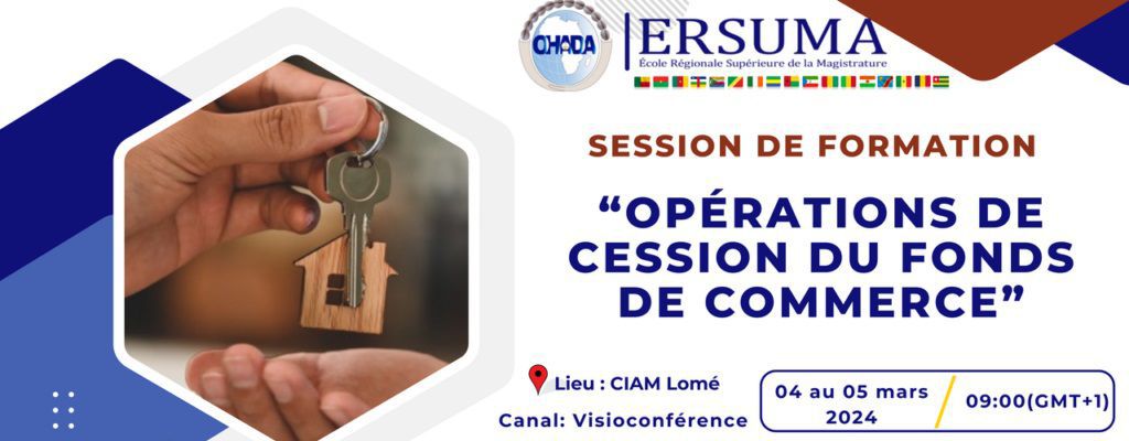 L'École Régionale Supérieure de la Magistrature (ERSUMA) de l'Organisation pour l'Harmonisation en Afrique du Droit des Affaires (OHADA), en partenariat avec le Centre International d'Arbitrage et de Médiation (CIAM) et le Cabinet SIRE OHADA, organise deux sessions de formation qui se tiendront simultanément en présentiel au siège du CIAM à Lomé (Togo) et par visioconférence du 04 au 08 mars 2024.