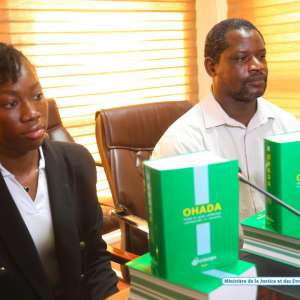 C'est donc le représentant de l'UNiDA qui a ainsi eu l'honneur, au nom de la Présidente de l'UNIDA, de remettre au Secrétaire Général du Ministère de la Justice et des Droits de l'Homme, 100 Codes verts OHADA, dernière édition.