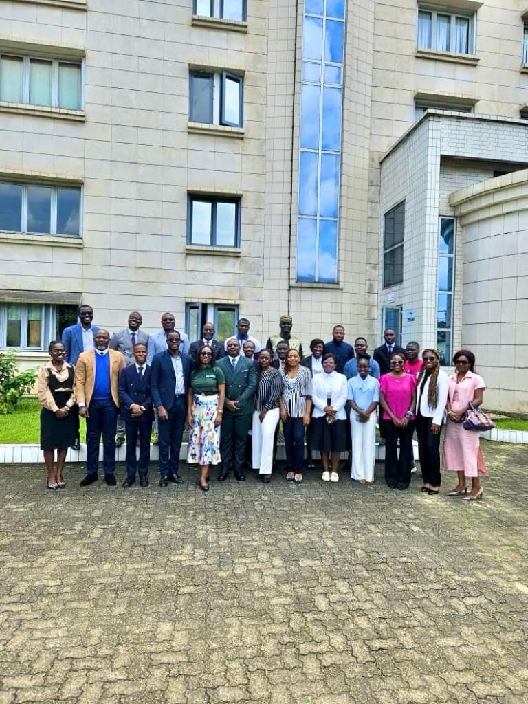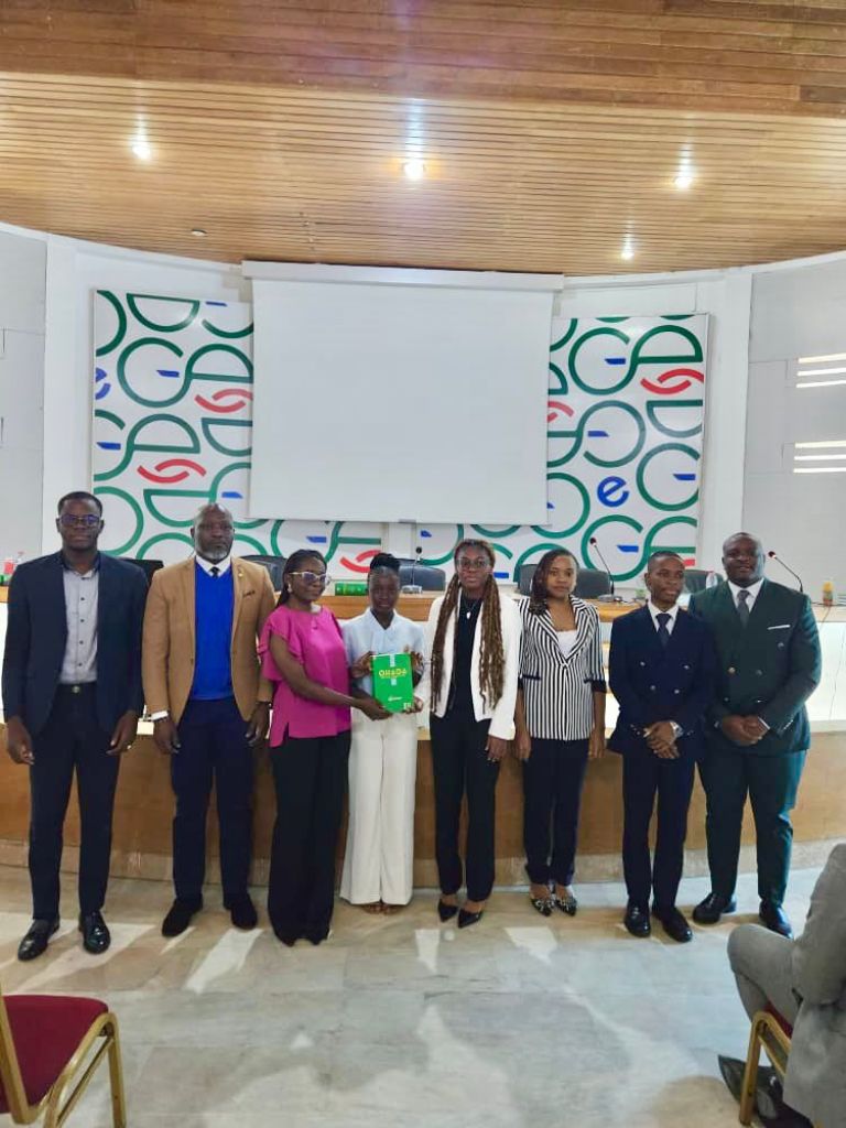 Docteur Moukete EKOUME, Magistrat et Enseignant a procédé à la remise solennelle du Code vert 2025 à l'équipe porte-étendard du Cameroun à la 16e édition du Concours International Génies en Herbe OHADA qui se tiendra à N'Djaména.
