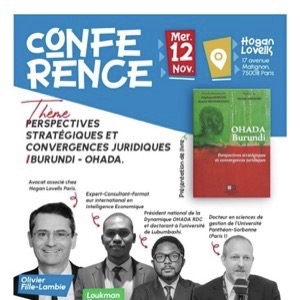 Co-organisėe par l'Institut Africain de la Réflexion Stratégique, l'UNIDA/www.ohada.com, les Clubs OHADA Paris et Toulouse et la Dynamique OHADA Lubumbashi (RDC), avec le soutien du Cabinet Hogan Lovells, cette manifestation mettra le droit OHADA et les perspectives d'élargissement au Burundi à l'honneur.