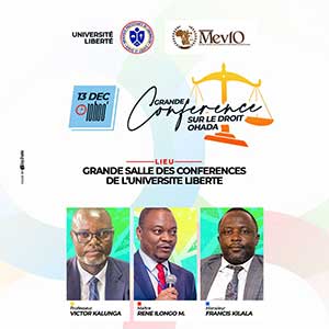 C'est dans ce cadre que la Maison d'Etude, Vulgarisation et Formation en sigle MEVFO, en collaboration avec la Faculté de Droit de l'Université Liberté de Lubumbashi (ex UPL), organisent une Grande conférence OHADA le samedi 13 décembre 2025 dans la grande salle des conférences de l'Université Liberté à partir de 10h.
