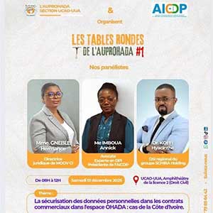 Cette activité, organisée en collaboration avec l'Association Ivoirienne des Correspondants à la Protection des Données à Caractère Personnel (AICDP) sera placée sous le thème : « La sécurisation des données personnelles dans les contrats commerciaux dans l'espace OHADA ».