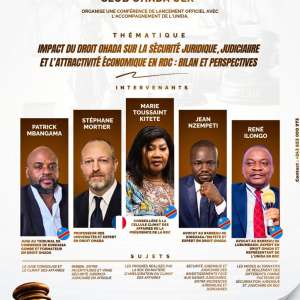 C'est à l'occasion du lancement officiel de ce club qu'une conférence inaugurale est organisée le mardi 17 février 2026 à partir de 10h au sein de l'Université Libre de Kinshasa situé à Kinshasa/Limeté industriel, 15e rue, sous le thème : « Impact du droit OHADA sur la sécurité juridique, judiciaire et l'attractivité économique en RDC : bilan et perspectives ».