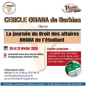 Journée du droit des affaires OHADA de l'étudiant, le 20 février 2026 à Ouagadougou (Burkina Faso)