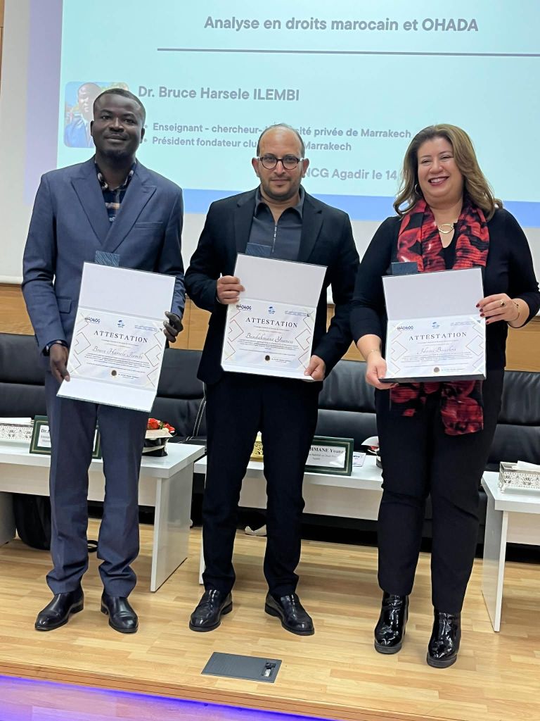 Initiée par le laboratoire de recherche MADILOG de l'ENCGA (École Nationale de Commerce et de Gestion d'Agadir) et l'EDTIC (équipe de recherche en droit et technologies de l'information et de communication ) de la FSJES d'Agadir avec le concours du Club OHADA Marrakech, la conférence a été modérée par le Pr Youness BENDAHMANE. Le premier temps de cette activité a été marqué par les allocutions de circonstance de M. Abdelhamid AIT BIHI (Directeur Général adjoint de l'ENCGA), du Pr Youness BENDAHAMANE et des membres du comité d'organisation.