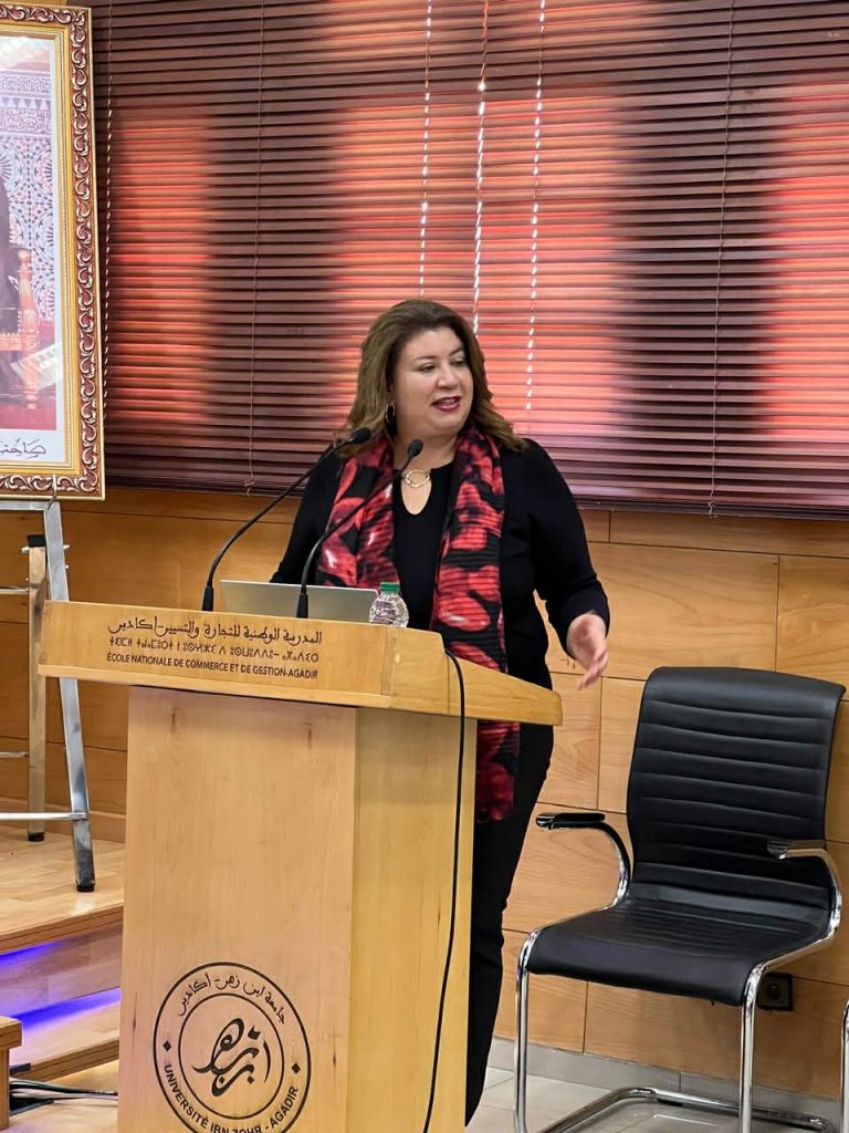 Le second temps de la conférence a été consacré à la présentation des thématiques par les intervenants. La première intervention a été assurée par Pr Bouchra JDAINI, Professeure de l'enseignement Supérieur en droit privé à l'ENCG d'Agadir, qui a traité de la thématique : « Vers un arbitrage commercial intelligent : possibilités et contraintes à la lumière de la loi 95-17 ».