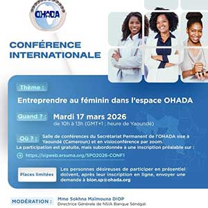 La conférence se tiendra pendant une matinée, soit le 17 mars 2026 de 10h à 13h dans la salle de conférences du Secrétariat Permanent de l'OHADA sise à Yaoundé (Cameroun) avec une ouverture à la visioconférence.