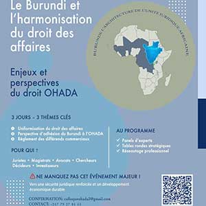 Cet événement majeur s'annonce comme un moment privilégié d'échanges et de réflexions sur la place du Burundi dans le processus d'harmonisation du droit des affaires en Afrique, avec à la clé des recommandations concrètes à l'attention des États, des institutions et des praticiens du droit.