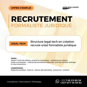 À ce titre, un recrutement de plusieurs formalistes juridiques est actuellement ouvert, visant des profils titulaires d'un Master 2 (droit des affaires, notarial ou contentieux), avec idéalement une première expérience en cabinet, étude ou entreprise, et un intérêt marqué pour le droit OHADA.