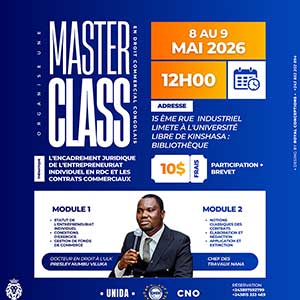 Master Class en droit commercial les 8 et 9 mai 2026 à Kinshasa (RDC)